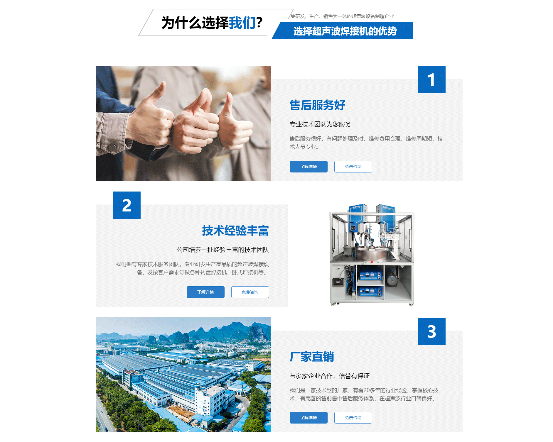 廈門勁榮機(jī)械設(shè)備有限公司是一家集研發(fā)、生產(chǎn)、銷售為一體的超音波設(shè)備制造企業(yè),主要產(chǎn)品包括多規(guī)格型號的超音波塑膠熔接機(jī)、熱板式塑料焊接機(jī)、多工位轉(zhuǎn)盤焊接機(jī)、振動摩擦焊接機(jī)、旋轉(zhuǎn)式塑膠熔接機(jī)及配套的工裝夾具等。公司自2003年成立以來,一直致力于產(chǎn)品不斷完善中,并追求產(chǎn)品的精益求精,于2004年向國家商標(biāo)局注冊了“勁榮”牌商標(biāo),2009年榮獲廈門市商標(biāo)。 經(jīng)過多年的努力,公司已經(jīng)發(fā)展成為占地面積2000余平方米、擁有員工50余人的企業(yè)。公司一直將“品質(zhì)是企業(yè)發(fā)展的原動力”作為經(jīng)營理念,嚴(yán)把質(zhì)量關(guān),建立了一整套有效的安全生產(chǎn)及管理模式,不僅贏得了同行的認(rèn)可,更取得了客戶的信賴,先后與九牧集團(tuán)、路達(dá)工業(yè)、建霖集團(tuán)、西伯電子、蒙發(fā)利實業(yè)、松霖科技、銥科集團(tuán)、科司特電子等公司建立了長期的合作關(guān)系。 面對已經(jīng)取得的成績,我們不驕不滿,因為深知業(yè)績只能代表過去,只有靠良好的產(chǎn)品質(zhì)量和完善的售后服務(wù)才能在客戶中口碑相傳,在...